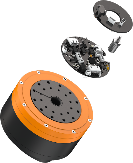 ReBeL robots and gearboxes are ideal for use in service robotics. Integrated power electronics generates a motor stop upon contact with an object or person located in the room.
